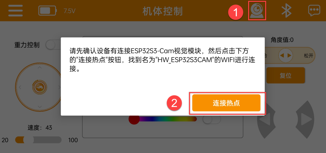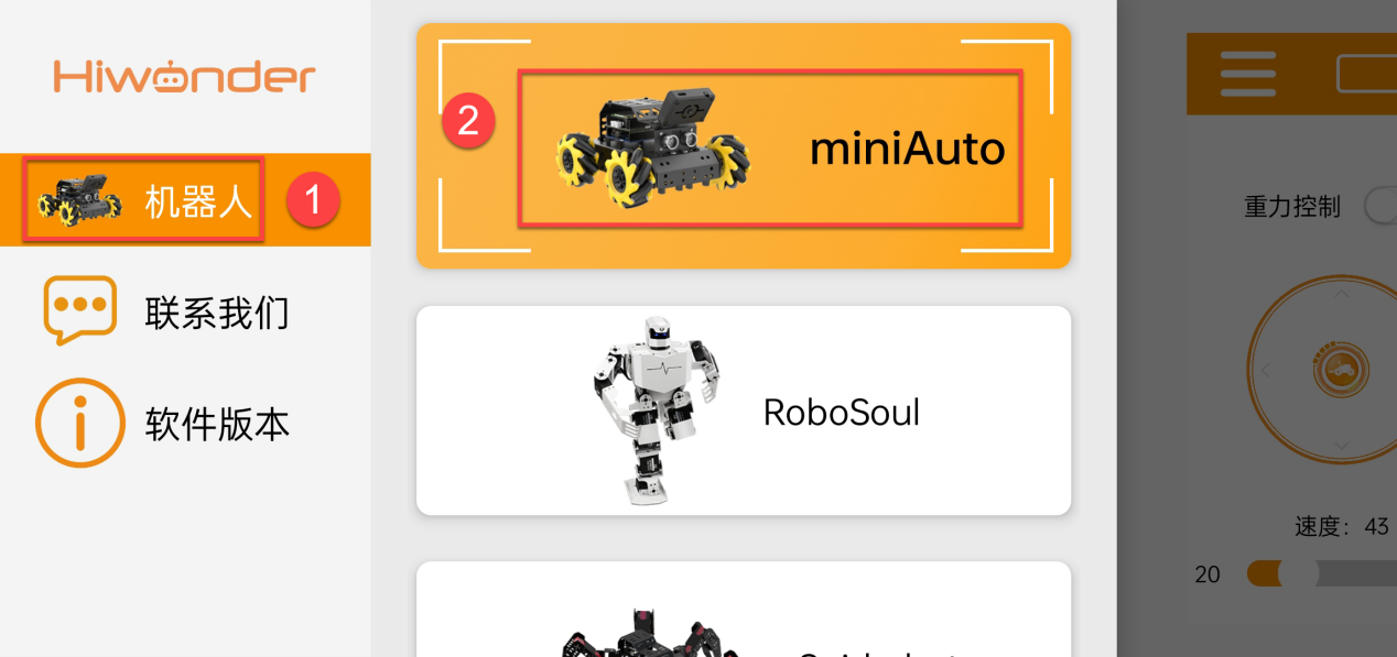 将小车开机,打开手机APP“Wonderbot”,点击左上角的