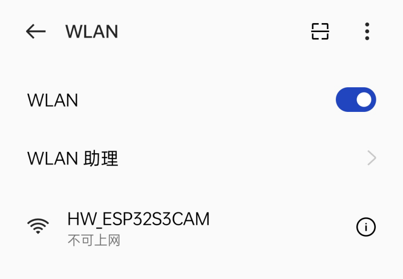 在手机Wi-Fi设置中找到“HW_ESP32S3CAM”,点击连接。