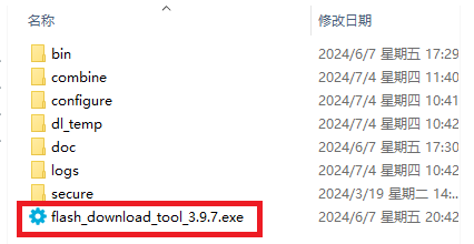 1. 请打开7.11.2 ESP32固件烧录工具\flash_download_tool_3.9.7压缩包里面的flash_download_tool_3.9.7.exe文件。
