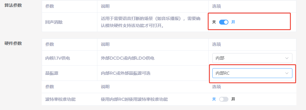4. 进入固件配置界面后,我们将重点说明关键参数的修改步骤。首先,在算法参数设置中启用"回声消除"功能。