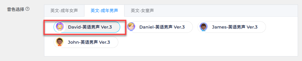8. 下面进入到编辑命令词功能中,首先需要选择播放的音色,这里我们选择“Dane-英语男声”。(如果是中文的话也可以选择程程-标准男童 Ver.1)