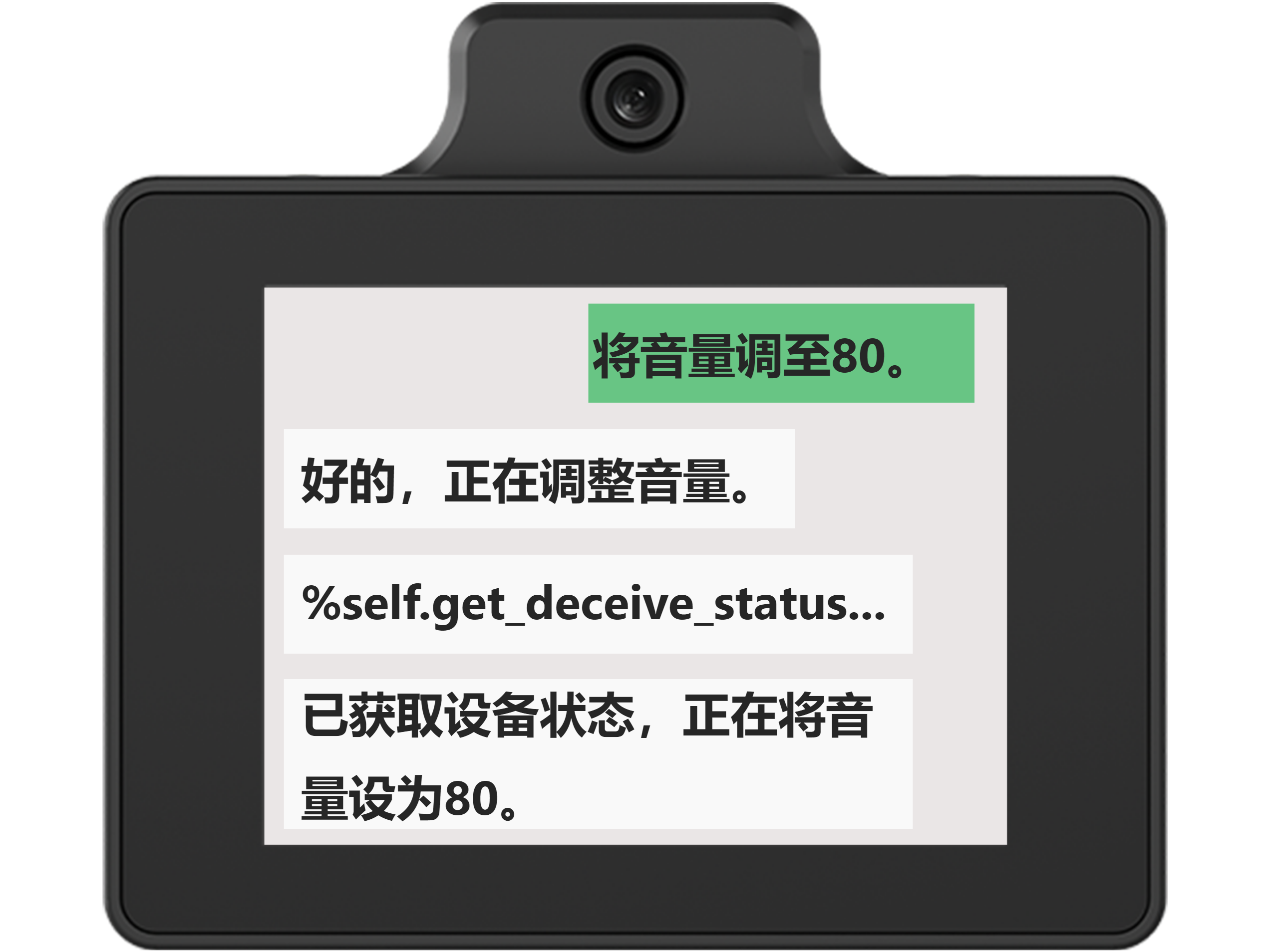 1. 模块识别后,对话框返回需调用的音量调节函数(用户无需关注),之后对话框显示大模型回应语句并同步播报。(回复语句为大模型模块随机生成,仅保证表意恰当)