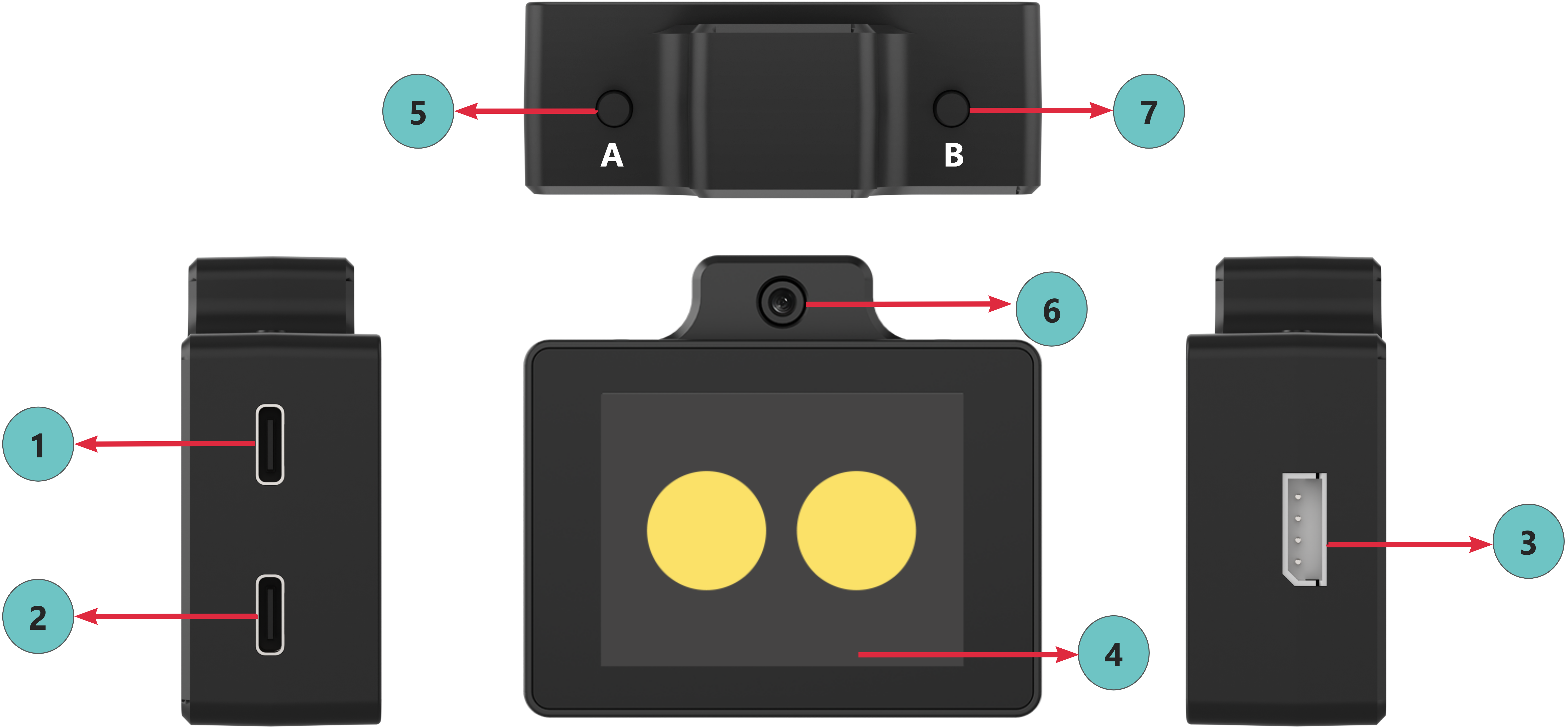 1. 模块支持如下接口供电:①Type-C接口(上方)②Type-C接口(下方) ③4-PIN IIC通信接口,用户可任选一处接口,接入外部供电设备,模块供电自动开机。