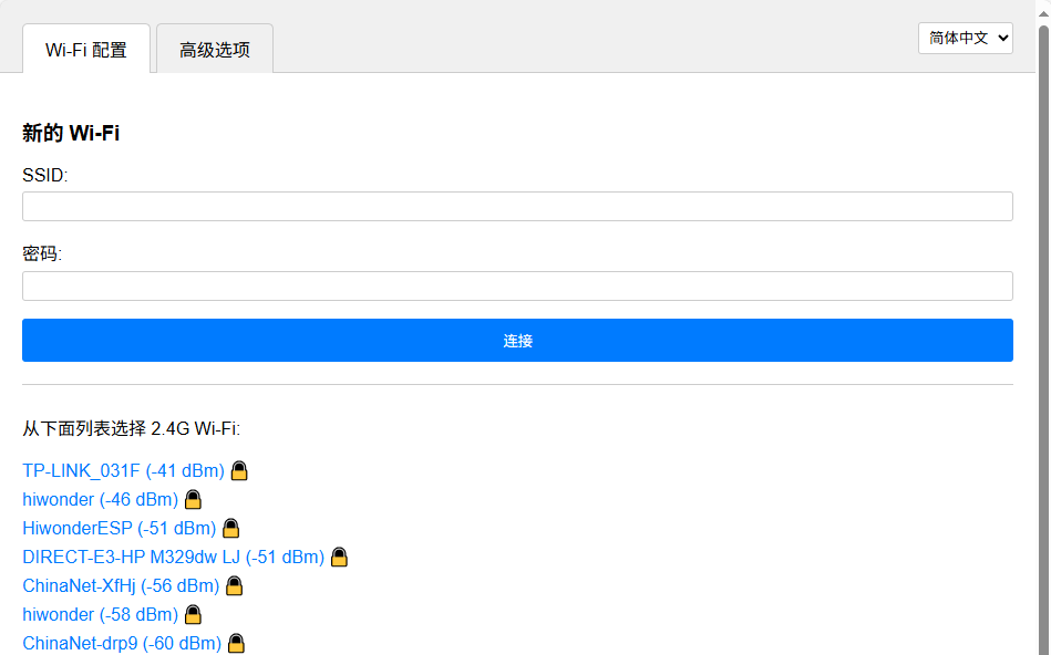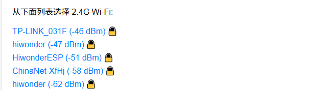 1. 模块处于配网模式,用户连接模块热点进入网络配置界面后,可以看到已保存的全部热点连接配置信息列表(若用户之前已经配置过热点连接信息),如下图: