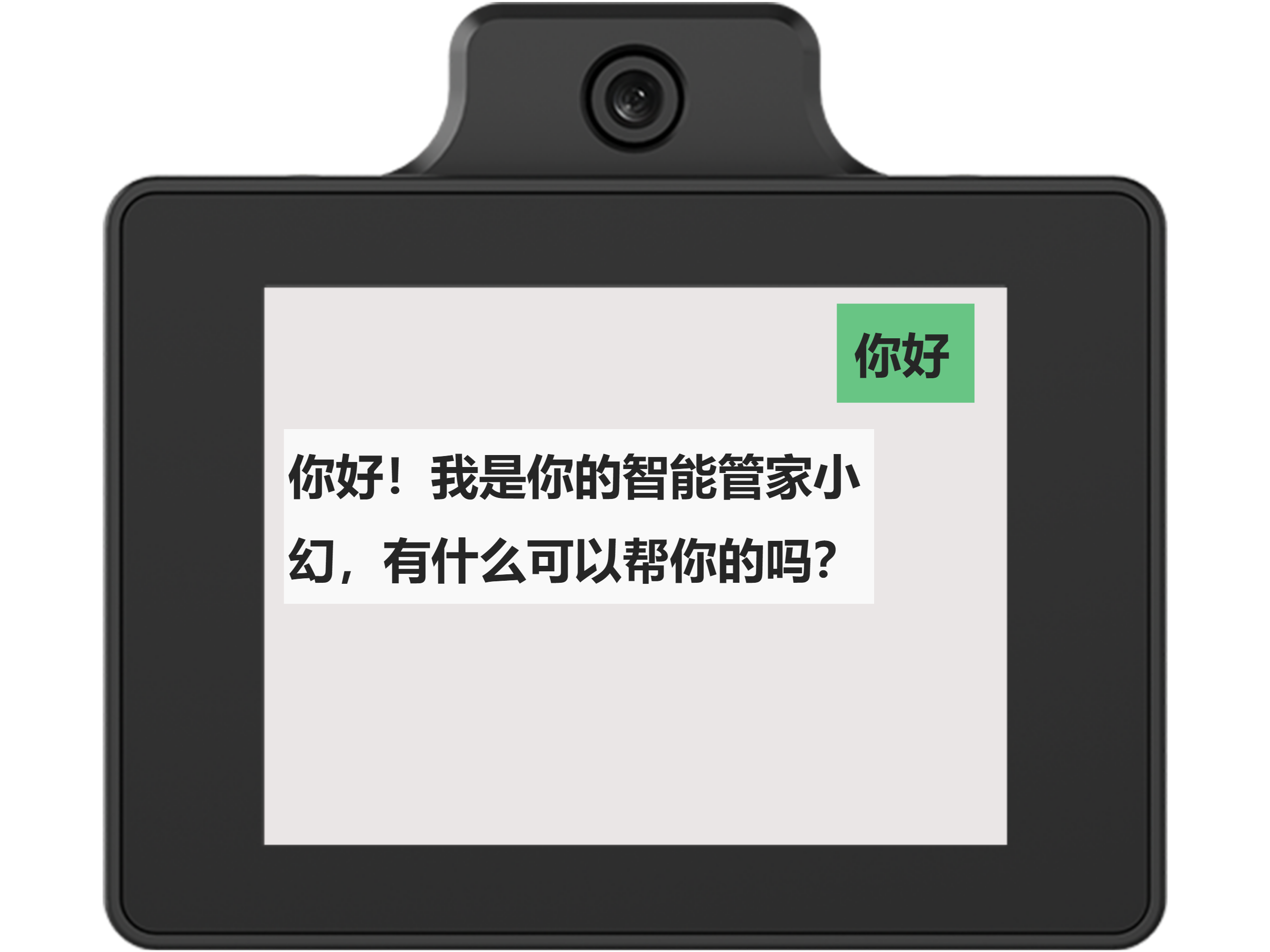 2. 用户可以说出指定唤醒词(出厂默认为“小幻,小幻”),或短按右侧按键B进入聊天模式,此时可以听到蜂鸣器发出“”提示音,屏幕切换至聊天框界面显示,模块被成功唤醒并开始侦听用户发言。