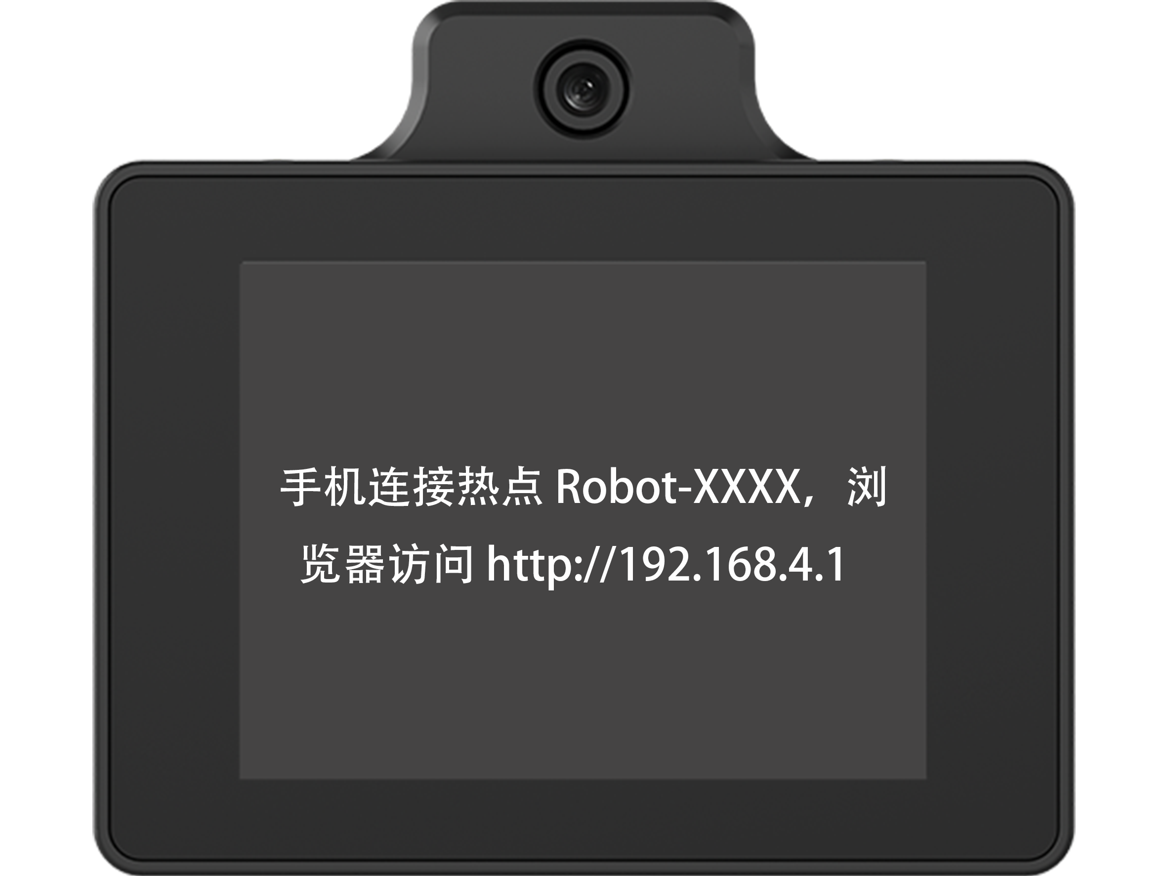 2. 此时画面显示设备热点名设备访问网址并伴随语音播报,大模型模块会开启自带热点,供用户连接配置。不同设备热点名不同,格式统一为“Robot-xxxx”,下文以热点Robot-B7B9为例进行讲解。
