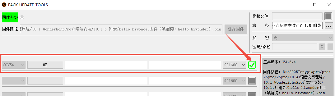 我们以烧录“hello hiwonder固件(唤醒词:hello hiwonder)”为例,操作步骤也一致适用于中文唤醒词烧录。