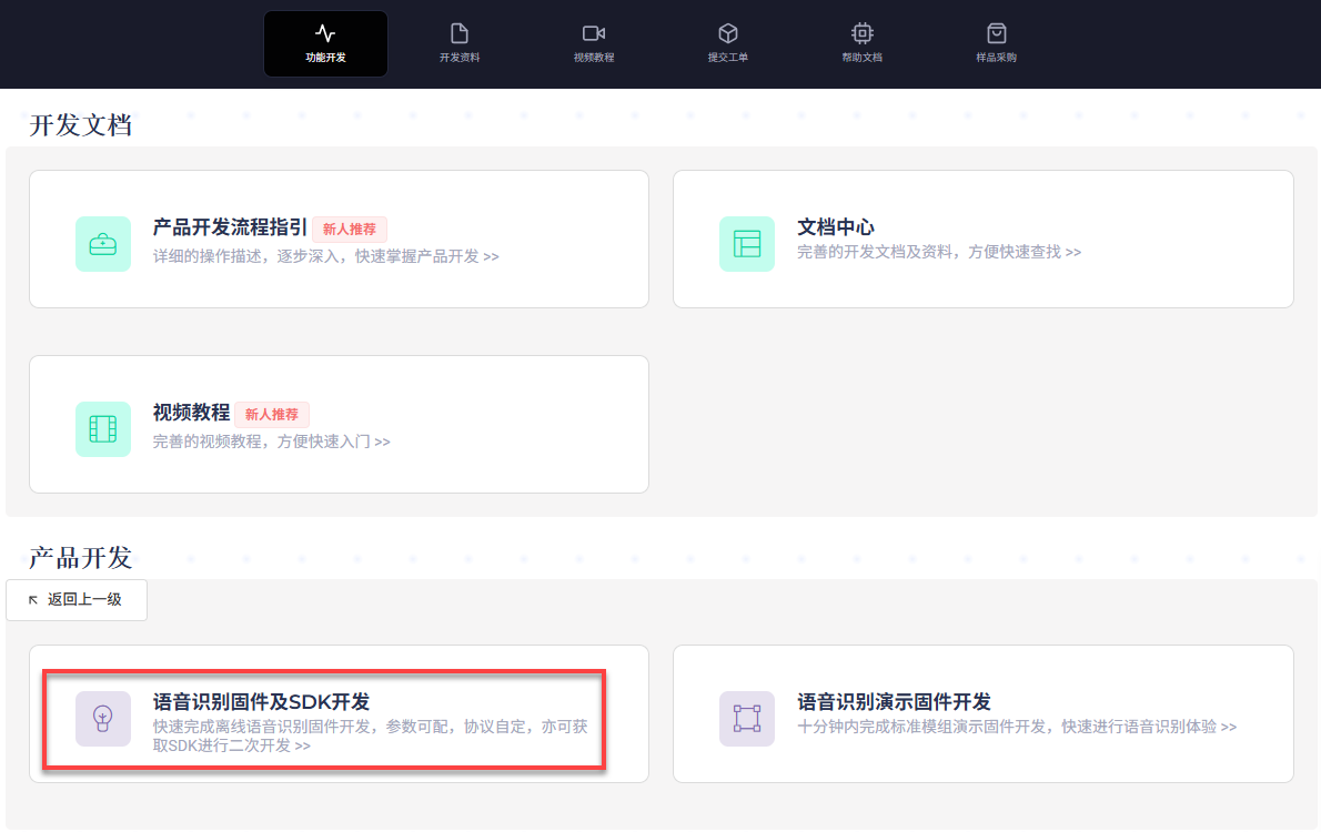 1. 在子菜单中再点击“产品固件及SDK深度开发”入口。