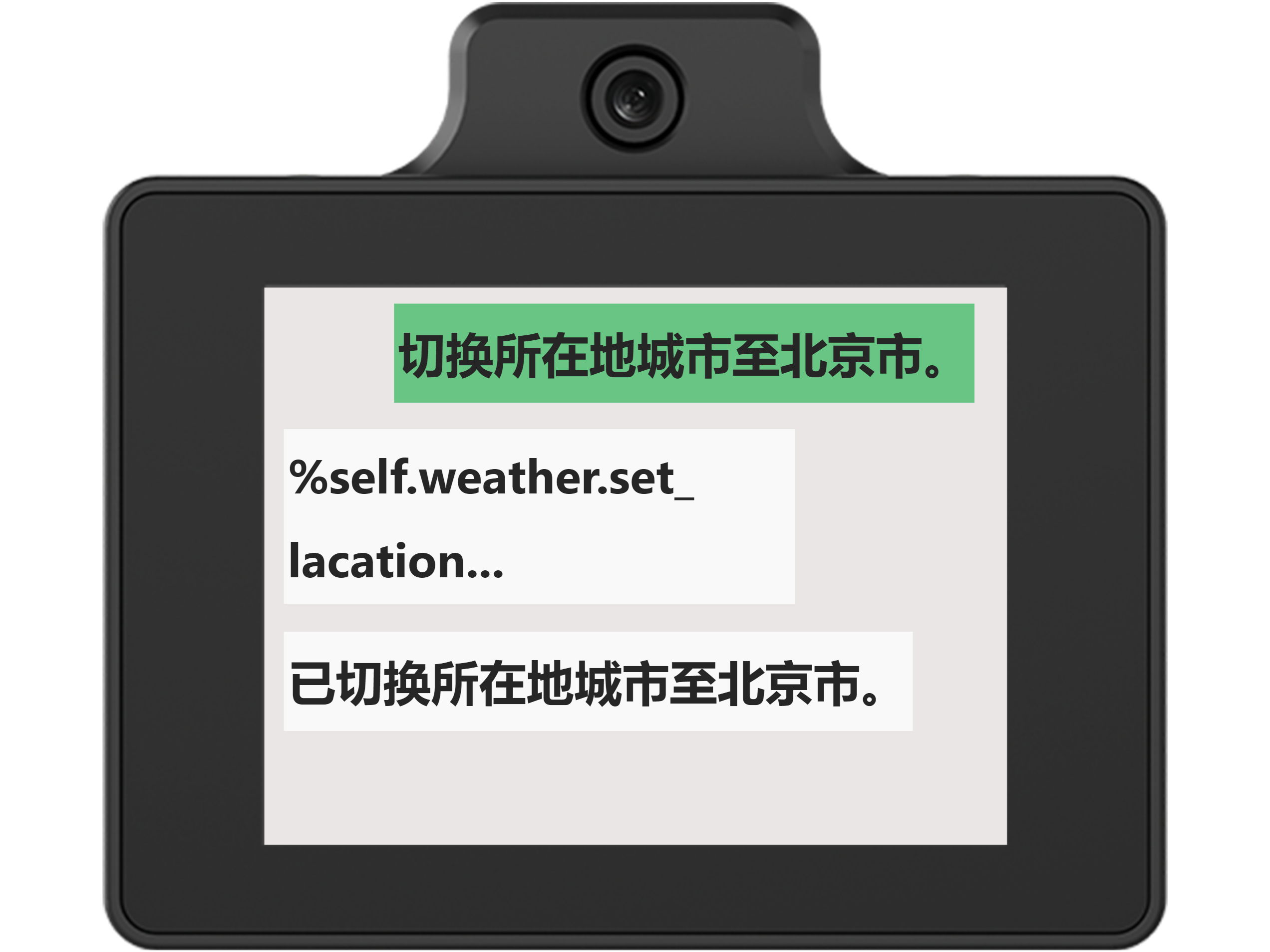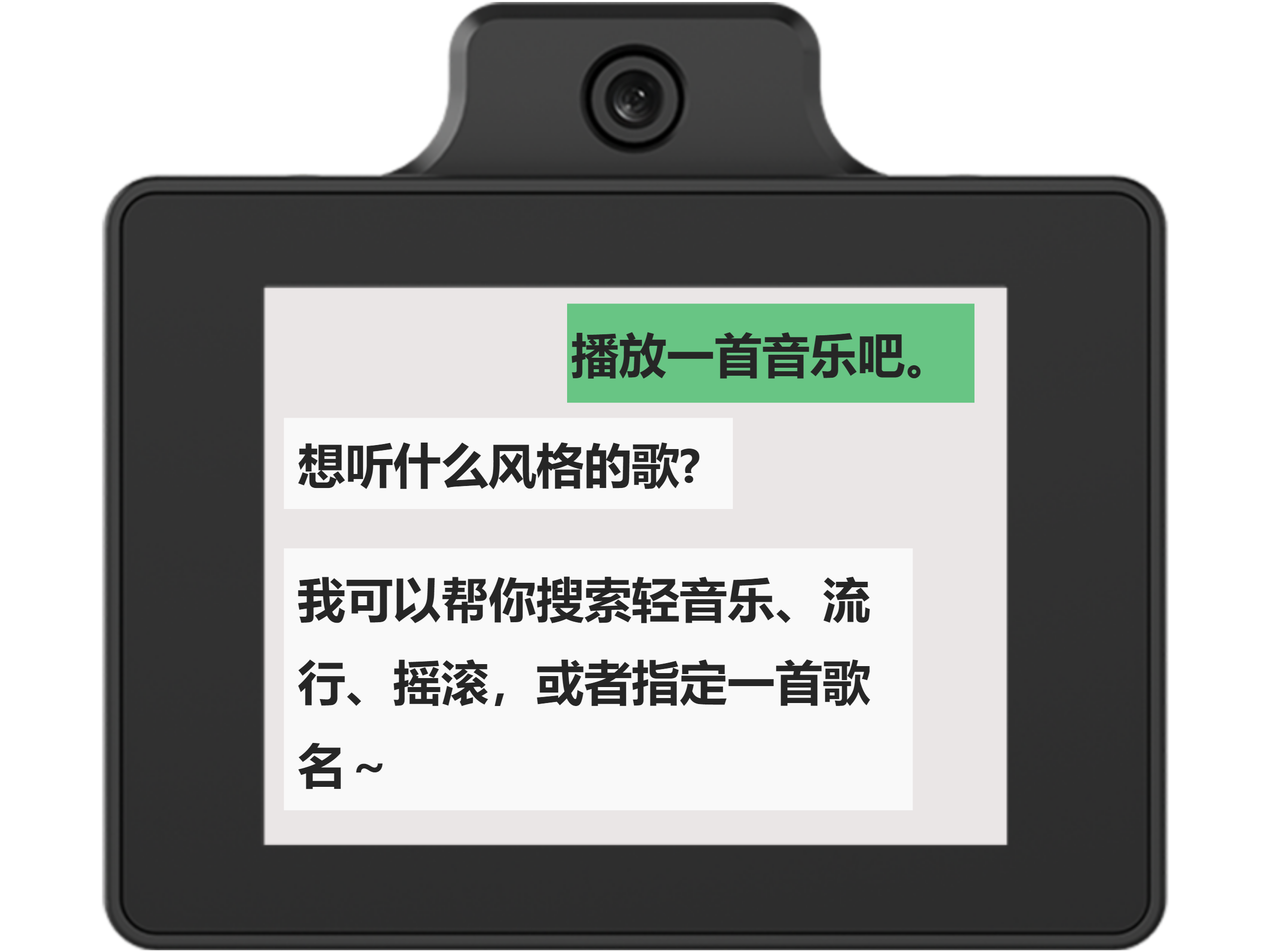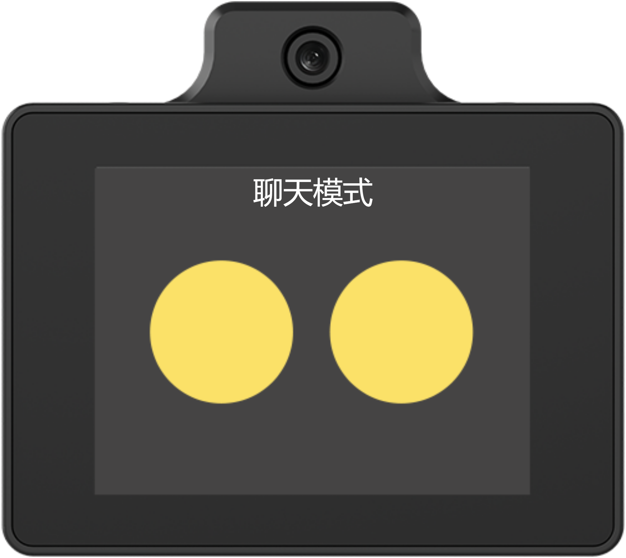 表情界面即为模块上电并联网成功后出现的界面;聊天界面为用户说出唤醒词/短按右侧按键进入的界面,会在7.4 聊天模式详细介绍。