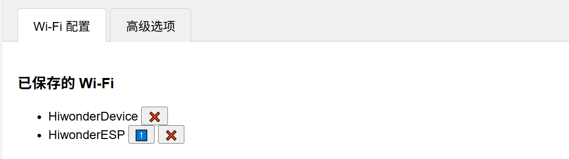 2. 用户可点击任意一条已保存的热点连接信息对应的图标,将其删除,也可点击图标提升其在模块配网时匹配次序优先级(列表由上到下优先级递减)。